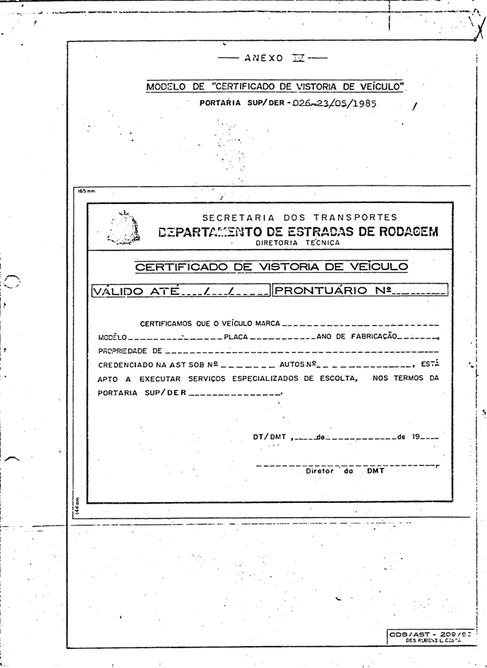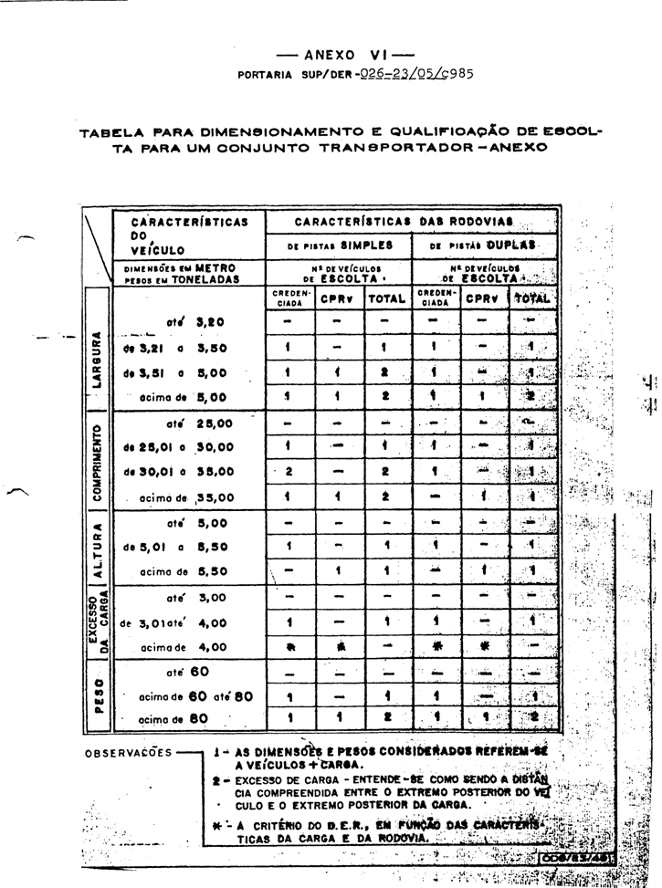 DEPARTAMENTO DE ESTRADAS DE RODAGEM, aos vinte e três de maio de 1985.