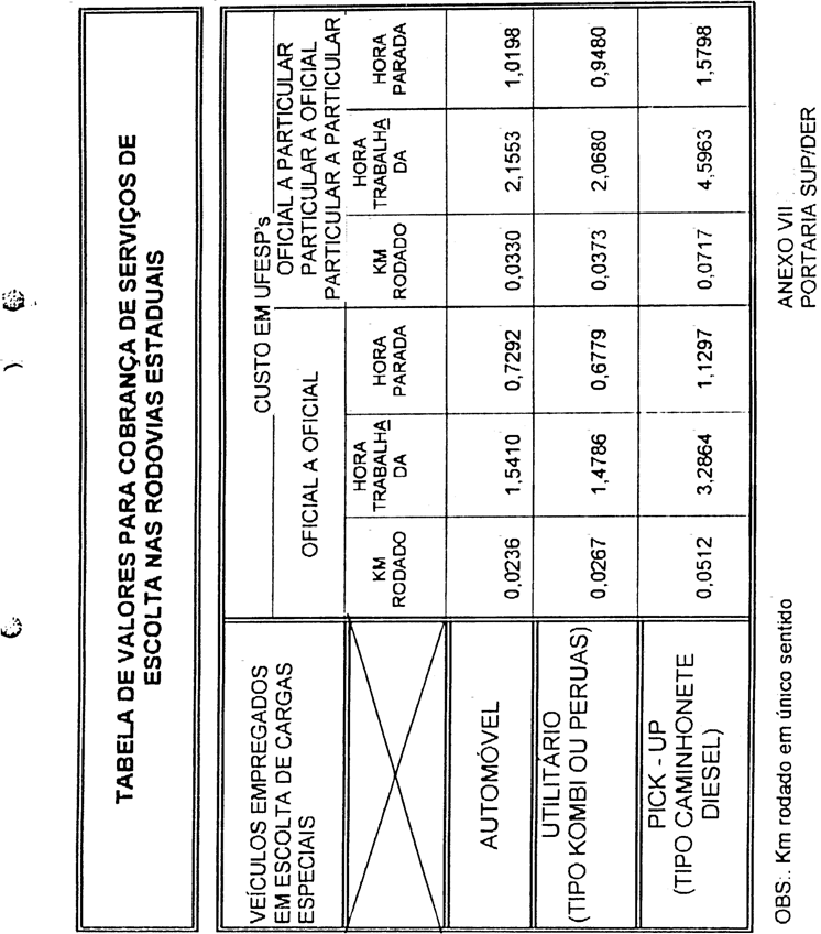 Artigo 16 - Para efeito de cobrança dos serviços de escolta, deverão as empresas observar os valores constantes da tabela do anexo VII.